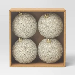 4ct 150mm Christmas Tinsel Ornament Set Champagne Gold – Wondershop™