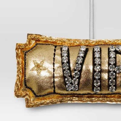 Bring VIP glam to your tree with this Christmas Plush VIP Ornament from Wondershop™. Made from polyester and plastic, this ornament features a rectangular pillow-like plush base in gold adorned with black “VIP” text and covered with sparkly roundels. It adds a festive touch to your holiday decor and also includes a built-in top loop for easy hanging from your tree’s branches.